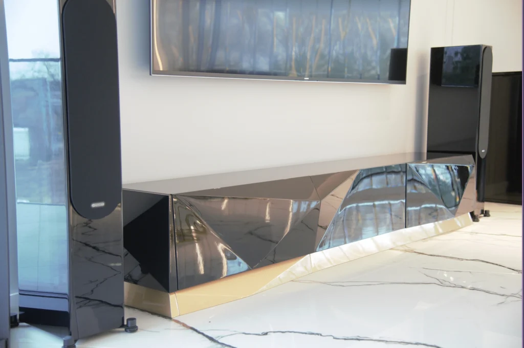 - Innowacyjne materiały i technologie – podczas procesu projektu i produkcji mebli do salonu stawiamy na wysoką jakość materiałów. Klientom proponujemy meble z drewna, z wykorzystaniem szkła, stali, ale także, np. kamienia naturalnego (marmur, granit), konglomeratu lub spieku kwarcowego docinanego na wymiar. Dzięki odpowiedniemu łączeniu różnych materiałów, meble w salonie zyskują nowoczesny charakter oraz unikalny styl. Często stosujemy również zaawansowane technologie, takie jak oświetlenie LED wbudowane w meble, czy systemy cichego domykania szuflad i drzwiczek, co podnosi komfort użytkowania.