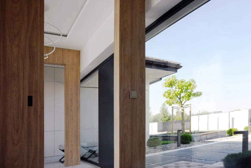 - Prostota i minimalizm – nowoczesne meble gięte do salonu charakteryzują się prostotą form i brakiem zbędnych ozdobników. Projekty są utrzymane w geometrycznych kształtach, co nadaje wnętrzom elegancki i uporządkowany charakter. Kolorystyka jest stonowana, dominują barwy neutralne, takie jak biel, szarość, czerń, beż oraz złote i srebrne dodatki dodające meblom elegancji i niepowtarzalnego stylu. W takich aranżacjach często pojawiają się też akcenty kolorystyczne, które ożywiają przestrzeń. Do elementów dekoracyjnych można zaliczyć m.in. stylowo wykonane lamele.